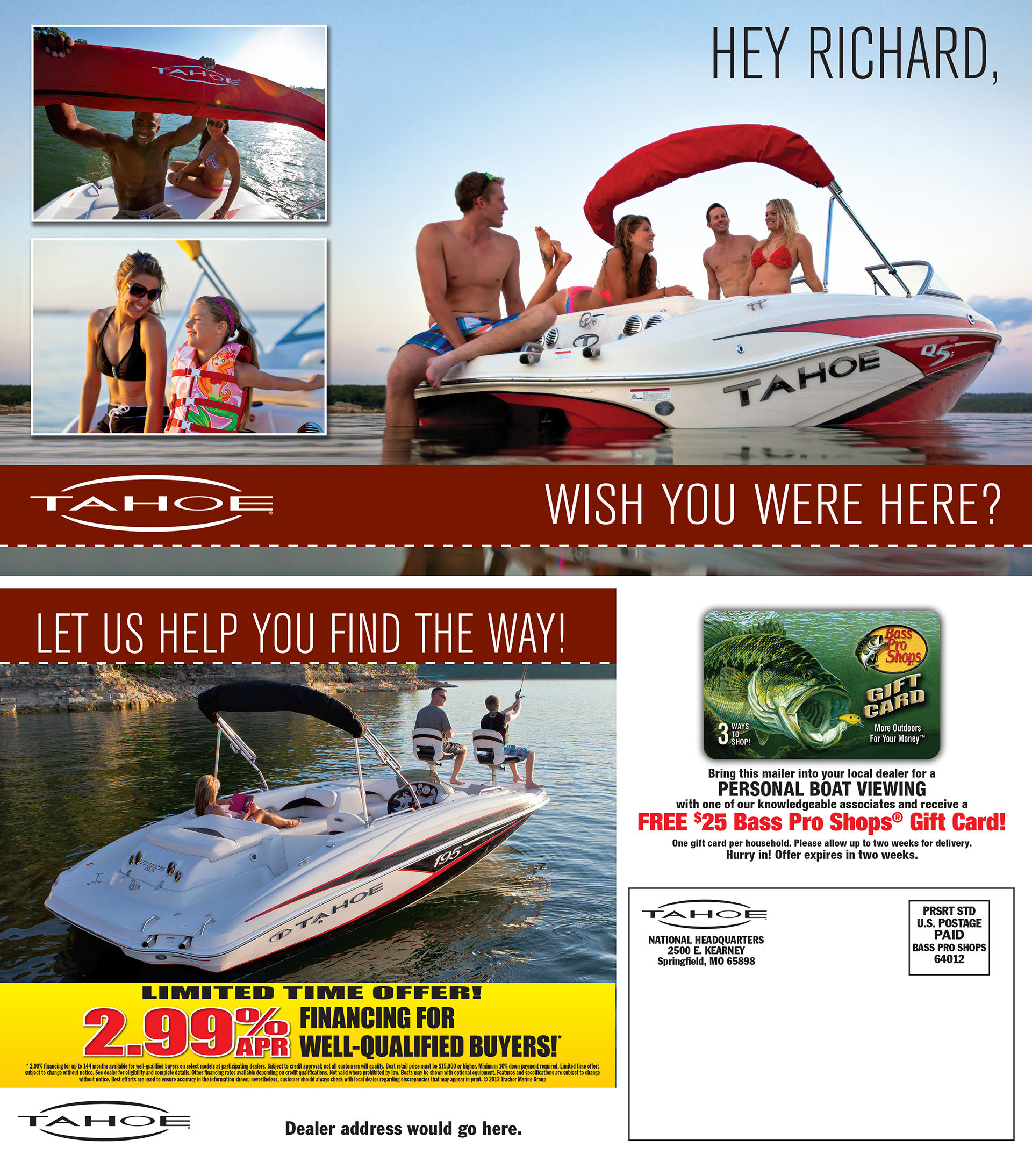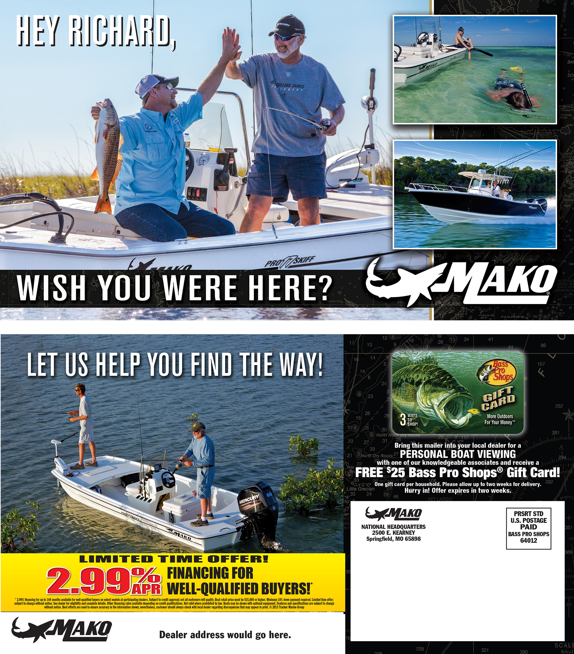 Keeping a customer base informed and engaged is an ongoing necessity for any business. To help the White River Marine Group do this, I've provided creative for direct mail outreach to help drive a variety of marketing promotions.